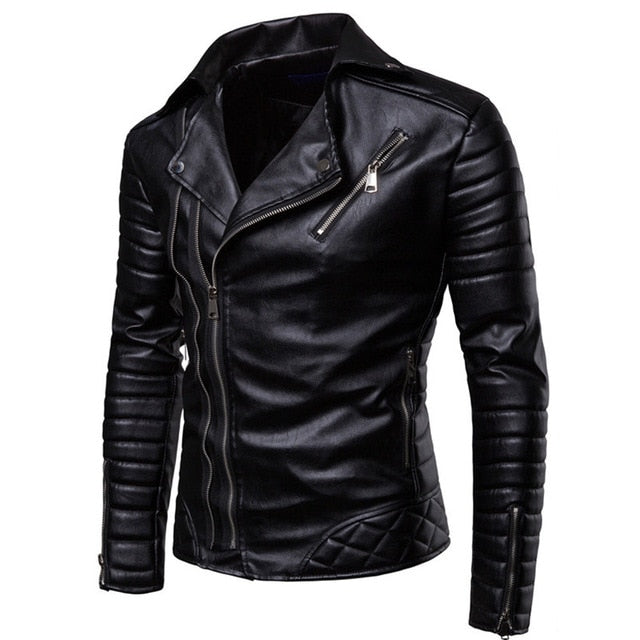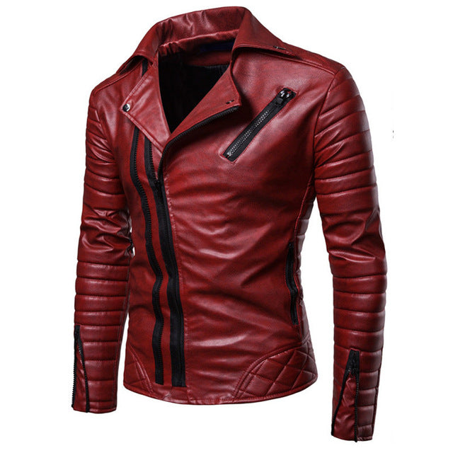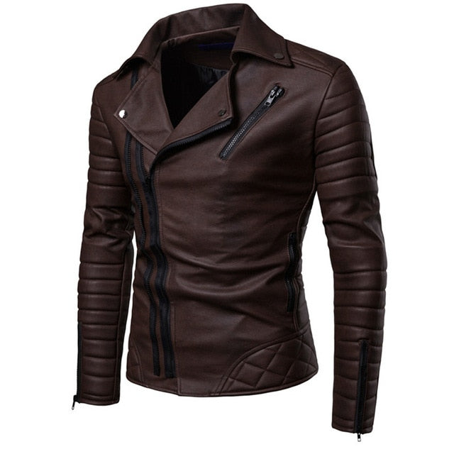 AKSR 2019 Jacket men New Men's Fashion Casual Long Sleeved Motorcycle Fur Leather Jacket Slim Fit Mens Winter Coats
